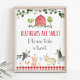 This cute sign will be a great addition to your party decor. Frame the sign and display it at your drinks table. The design features watercolor farm animals with greenery, colorful confetti and a red gingham border.