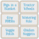Farm themed birthday party food table stickers. One sheet of six stickers to customize with your choice of text in a fun font in blue. Describe the food being served and give it a farm flair, such as; cow patties, chicken nuggets, veggie patch and pigs in a blanket. Or, use simple descriptions, in one line or two. The size of the individual stickers will depend upon the size sheet ordered. This sheet is 8x8 inches so each sticker will be approximately 3.5 x 2.5 inches (this is not exact).