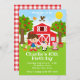 Farm Red Barnyard Birthday Brown Hair Girl Invitation