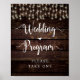 Rustic Farm country Dark Brown Wood, String Lights Black font, Wedding Program, please take one Poster/ sign.