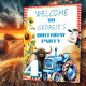 Farm birthday party welcome poster size 16x20 inches. Personalize with child's name in blue to welcome guests to the party. Add his, or her, age at the bottom corner. Red gingham checks background, with sunflowers, blue tractor, pile of hay, bull and cow image. The design is perfect for a little boy's farm themed birthday of any age. You may change the size as long as the dimensions are similar. No text should be near the edges. You may also choose to download this design to print your own poster.