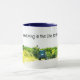 This cool mug features my original photograph of a farm tractor on a country road, processed into an artsy painterly style, with the words "Farm Living is the Life for Me" on the cup. The handle and inside of the cup are navy blue to complement the artwork.