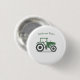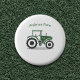 A button with an illustration of a green and gray farm tractor in cartoon style! A nice idea for gift to a farmer, a kid or a countryside family!