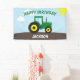 This fun personalized tractor birthday banner is perfect for the tractor or farm-loving child in your life. This banner features a fun green and yellow tractor with a bright yellow sun and some puffy white clouds. Personalize with your child's name and you'll have a treasured keepsake for years to come.