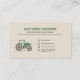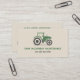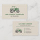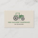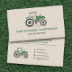 A business card for farmer or farm machinery maintenance activities on a beige background with a green and gray farm tractor in cartoon style.