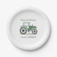 Birthday paper plates with an illustration of a green and gray farm tractor in cartoon style. You can customize texts and used them for any another party such as countryside party, wedding, retirement, bachelorette party, backyard party, neighbors party, summer reception, etc.