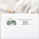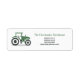 A return address label sticker with an illustration of a green and gray farm tractor in cartoon style! It could be used for a countryside family or a farmer!