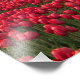 Photo print of a farmer wearing yellow wooden shoes inspecting his red tulips with in the background a traditional windmill in spring in the flower Bulb Region in the Netherlands.