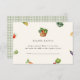 Make your baby shower both practical and charming with our ‘Diaper Raffle’ enclosure card! Designed to complement a farmers market locally grown baby shower, this card encourages guests to bring a pack of diapers for a chance to win a fun prize. Featuring rustic, boho illustrations of fresh produce and greenery, along with a gingham background, it seamlessly ties into your organic, country-inspired celebration. This thoughtful touch not only adds a layer of whimsy to your event but also helps prepare for baby’s arrival with a stash of essentials. Pair it with our coordinating designs for a complete set!