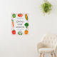 A cute farmers market pink baby shower welcome sign foam board. Design features hand painted watercolor vegetables on a pastel pink gingham background.