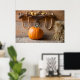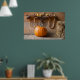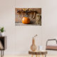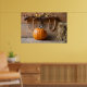 Farmers Museum. Pumpkin in barn with bale of hay Poster
