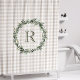 Farmhouse Beige Buffalo Plaid Wreath Monogram Shower Curtain