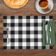 Neutral farmhouse style placemat features a simple classic black and white buffalo / gingham plaid pattern on both sides of the placemat. Note, the black background color can be customized to coordinate with your home decor.