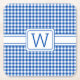 Farmhouse Blue and White Gingham Plaid Monogram Square Paper Coaster