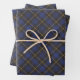 Farmhouse blue black gold diagonal plaid pattern wrapping paper sheets