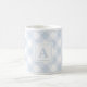 Sip up with this customizable mug, featuring a baby blue plaid pattern with a bold black monogram.
