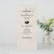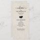 This trendy and rustic wedding program has a modern vibe with its elegant black text, heart silhouette, and script typography on a white wood look background.