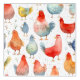 Cute and happy farmhouse chickens, cozy, colorful and rustic style drawing.