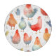 Cute and happy farmhouse chickens, cozy, colorful and rustic style drawing.