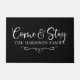 A modern calligraphy door mat that really makes you feel welcome. A great gift for newlyweds or new homeowners, our custom come and stay doormat in elegant durable grey features "Come and Stay" in modern, elegant handwritten calligraphy script. Personalize with your family name in classic white lettering. Designed for you by Blackberry Boulevard.