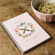 Artfully crafted colorful florals and foliage botanical pattern wreath, rolling pin, and whisk crest design. Modern vibrant colors of pinks, oranges, purples, greens, yellows, salmon pink, and olive greens are beautifully combined to create this bold, modern and abstract floral print wreath. A Faux wood rolling pin and whisk are placed in the inside of the floral wreath. Customized with your name. All illustrations contained in our floral and foliage biracial pattern wreath rolling pin and whisk recipe books, are hand-drawn original artwork by Moodthology.