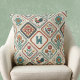 This beautiful traditional looking throw pillow features European style farmhouse folk motifs, similar to the style of a vintage wall hanging, in sage green and dark 'terra cotta" color orange. The motifs include tulips, roosters, a compass rose, and more, all in country style earth tones in various shades of green, gold, orange, tan, and brown. These motifs often appear in Pennsylvania Dutch and Scandinavian art. In some cultures, the rooster symbolizes a new day, and the tulip conveys faith and hope.