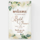 Farmhouse Fresh Rustic Country Floral Watercolor Lush Flower Design with greenery, Vines, Leaves, Foliage, and copper foil accents. Subtle soft colors of ivory, white, blush pink, and butter yellow. A cottage chic look perfect for a spring, summer, or fall wedding at your homestead, farm, or barn venue. A classic shabby vintage style of romantic florals paired with fun whimsical script fonts and serif. - Wedding Bridal Shower Welcome Banner Sign!