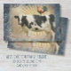"Farmhouse Kitchen, Black and White Cow and Rooster with Dusty Blue Decoupage, Heavy Weight Extra Large Sized Decoupage Tissue Paper." A colorful rooster rides on the back of a black and white milk cow which where painted in oil pastels with mixed media and combined with script calligraphy handwriting from handwritten letters, scrollwork and various leaf foliage ephemera perfect for a farm fresh decor. The artwork was painted and graphically designed by internationally licensed artist and designer, Audrey Jeanne Roberts. Copyright.