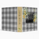 Rustic trendy farmhouse kitchen personalized cooking recipes organizer binder with vintage barn wood, black and white buffalo check gingham pattern, burlap, and yellow sunflowers botanical bouquets. ++++++++++ Personalize it with your monogram, name and text on front and spine! +++++++++ It can be a modern personal recipe cookbook for your kitchen, a family grandma's recipes collection, or a beautiful keepsake gift for bridal shower, wedding, birthday, Christmas, or for a chef.