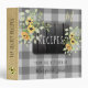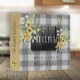 Rustic trendy farmhouse kitchen personalized cooking recipes organizer binder with vintage barn wood, black and white buffalo check gingham pattern, burlap, and yellow sunflowers botanical bouquets. ++++++++++ Personalize it with your monogram, name and text on front and spine! +++++++++ It can be a modern personal recipe cookbook for your kitchen, a family grandma's recipes collection, or a beautiful keepsake gift for bridal shower, wedding, birthday, Christmas, or for a chef.