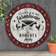 Farmhouse Name Rustic Buffalo Plaid Barn Wood Cow Round Clock