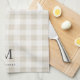 On-trend farmhouse style monogrammed kitchen towels feature your family name and single initial monogram in classic lettering on a tonal buffalo plaid background in chic neutral colors.