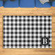 Farmhouse Plaid Personalized Monogram Black White Rug
