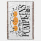 This adorable farmhouse blanket features a pumpkin patch sign that says "Farm Fresh Pumpkins" in a decorative font. This blanket will add a cozy touch to your fall harvest decor.