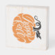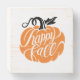 This farmhouse style wood block features a pumpkin design with the words "Happy Fall." Colors include Orange and black