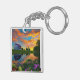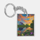 Farmhouse Purple roof Pond at Sunrise Keychain