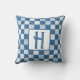 Farmhouse Rustic Checks, Monogram, Blue, White Throw Pillow