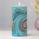 farmhouse teal blue Woodgrain turquoise swirls Pillar Candle