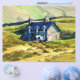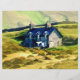 A pretty watercolor of a Welsh stone farmhouse nestling in the mountains of Wales UK.