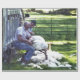A watercolor of two farmers hand shearing sheep an art rarely seen in these modern times.