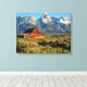 Farms | Barn Shadowed by Snow Capped Mountains Canvas Print