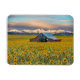 This amazing Getty Images photo features a field of sunflowers growing around an old dilapidated barn with snowy mountains in the background.