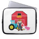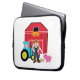 Our Farmyard design is a colorful, fun farm theme design on bibs, burp cloths, keepsakes, plates, pacifiers, blankets, pillows, and other items featuring a red barn, farmer, and farm animals!