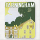 Vintage travel poster for transportation excursions to Farningham in Sevenoaks, Kent, England in an art deco style illustration with simplistic lines and color blocking.