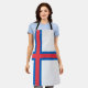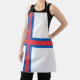 Great color and even though I ordered the kid size, it covers well enough to use during the holidays. I am not a big woman and prefer a shorter apron. I stand 5"6" and the length of the garment goes to mid-thigh. The tie straps fit well at my waist and even though there is no neck strap adjustment, the opening is plenty big enough. I am happy with the size and fit. I am sharing my apron with my 10 year old grandson, too! The color is vibrant and looks good, as shown on the website. The stitching looks strong and reinforced. Photographed is front side and back side of the apron, reinforced straps and coloring. My phone camera may not be the best at showing the details.