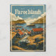 A breathtaking vintage portrayal of the Faroe Islands, showcasing their rugged landscapes, dramatic cliffs, and picturesque villages. The design captures the essence of this remote archipelago in the North Atlantic, with its green hills, cascading waterfalls, and traditional grass-roofed houses. Rendered in a nostalgic style, the artwork evokes the timeless beauty and pristine nature of the Faroe Islands, inviting viewers to discover its unique charm and unspoiled scenery.