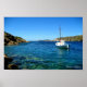 Fishing boat floating on the crystal blue waters in Faros on the island of Sifnos