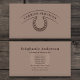 A simple & elegant business card with an illustration of a horseshoe and customizable information, all in brown tones. Perfect for activities such as farrier, veterinary, horse training and breeding, horse riding instructor, etc.