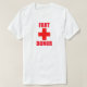 The shirt is good quality and fits just fine, but the colors of the printing are not as bright as in the sample photo. Not the best. The colors are a lot brighter in the sample photo; when I received the shirt they appeared faded. The red looks a little more pink and the blue is a lot lighter. N.B. I did not wash the shirt yet.
