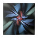 Ceramic tile with "Fascination," by Susan Wallace. Copyright © 2010, Susan Wallace. A fanciful abstract design reminiscent of a fascinator headpiece, with feathery shapes in vibrant blue, crimson and sage green.